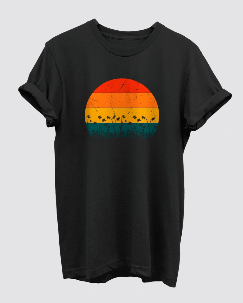 Retro Sunsets Vintage Black T-Shirt for Men